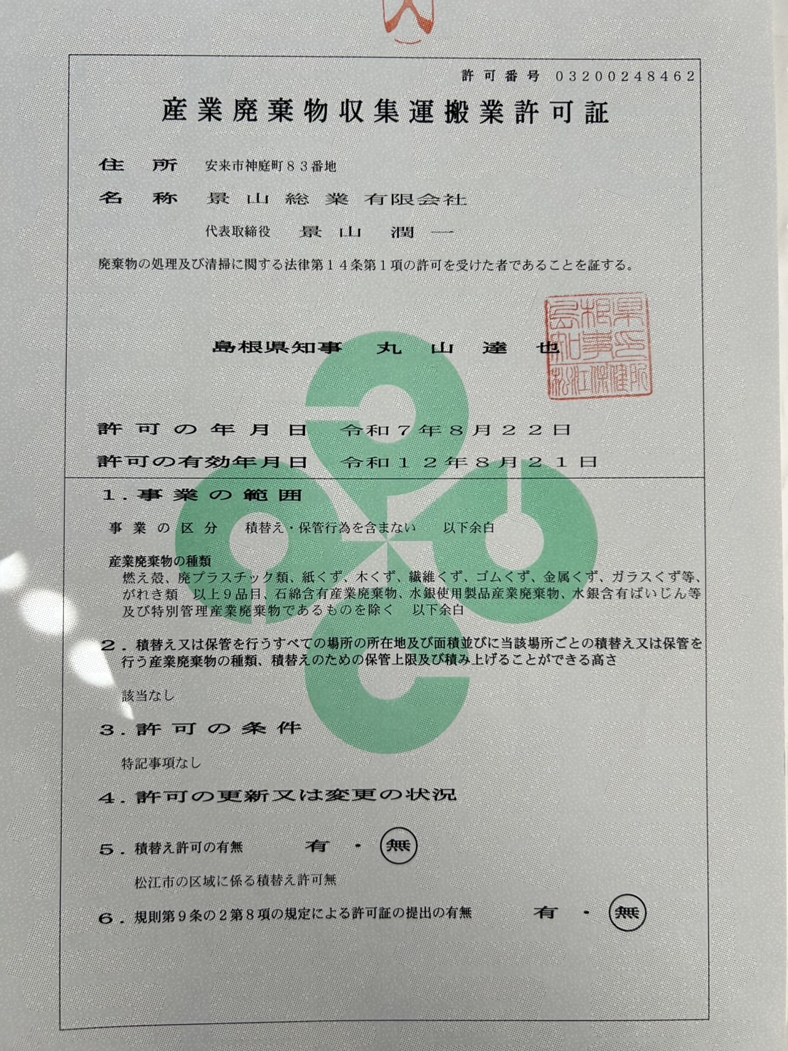 産廃の収集運搬許可を新規で取得いたしました。