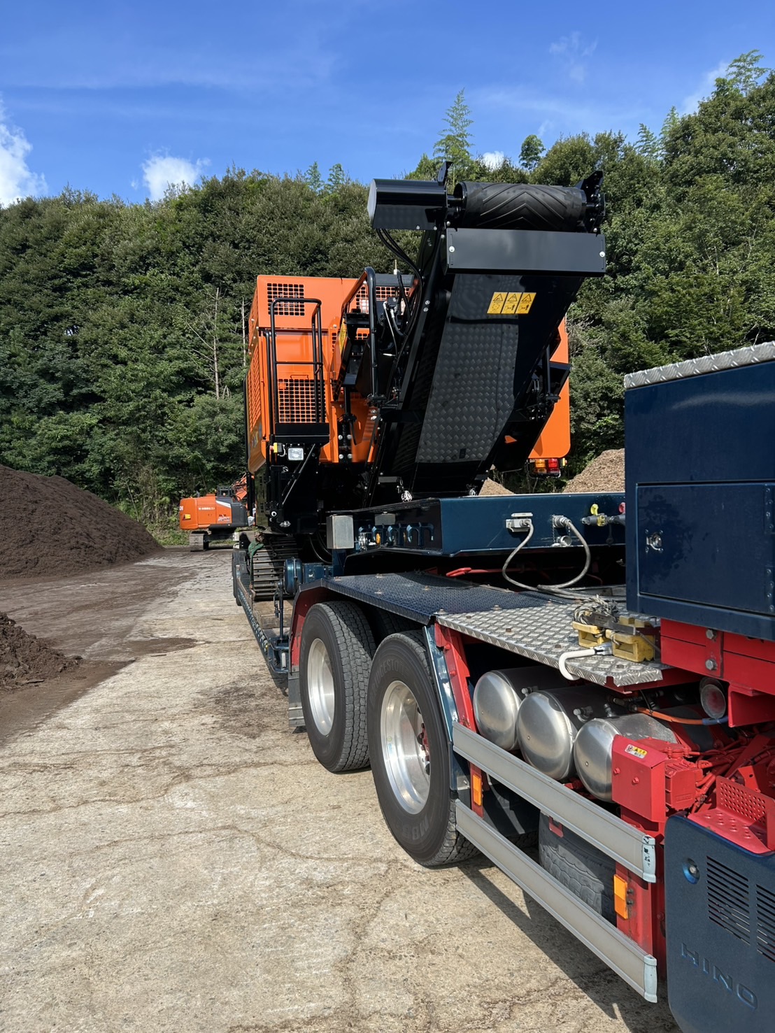 うちのトレーラーでは大きさ的に積めない機械だったため、普通は協力業者に外注するのですが